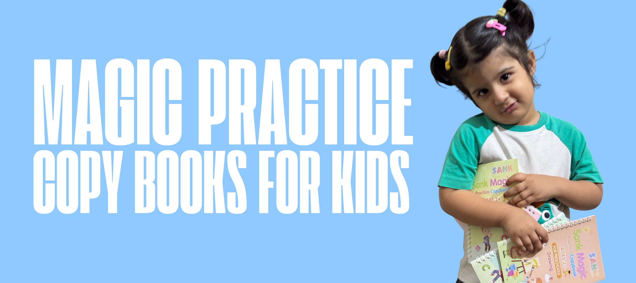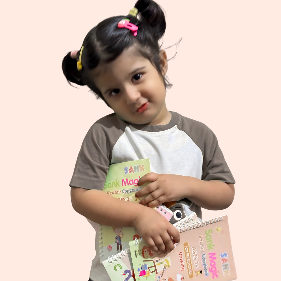Sank Magic Practice Copy Books (4 Magic Copybooks + 10 Extra Refills + 1 Magic Pen)